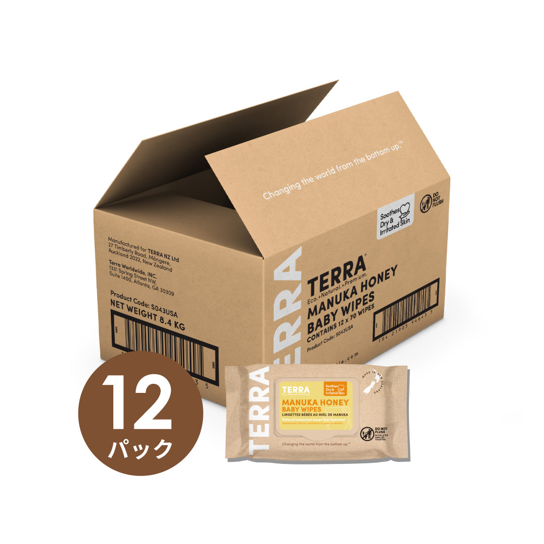 ニュージーランドで作られたTERRAのおしりふきは、自然の恵みを最大限に活かし、プラスチック、化学物質、香料、漂白剤を一切使わない赤ちゃんのお肌と地球にやさしいおしりふきです。