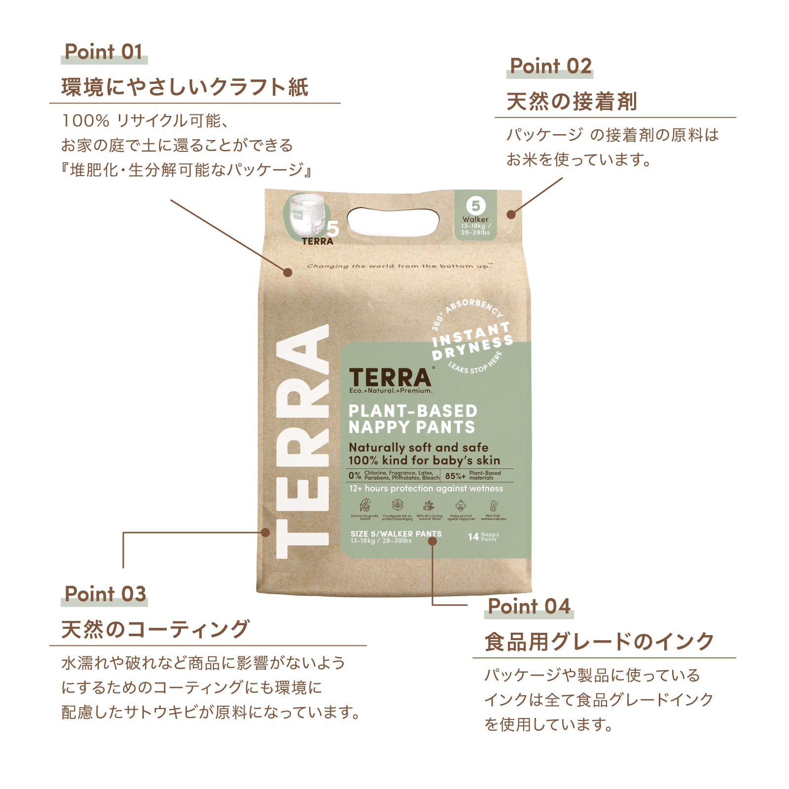 赤ちゃんの肌に触れる部分、お知らせサインは植物由来の素材を使用。またパッケージにはプラスチックを使用せず製品からパッケージに至るまで赤ちゃんと環境へのやさしさにこだわりました。