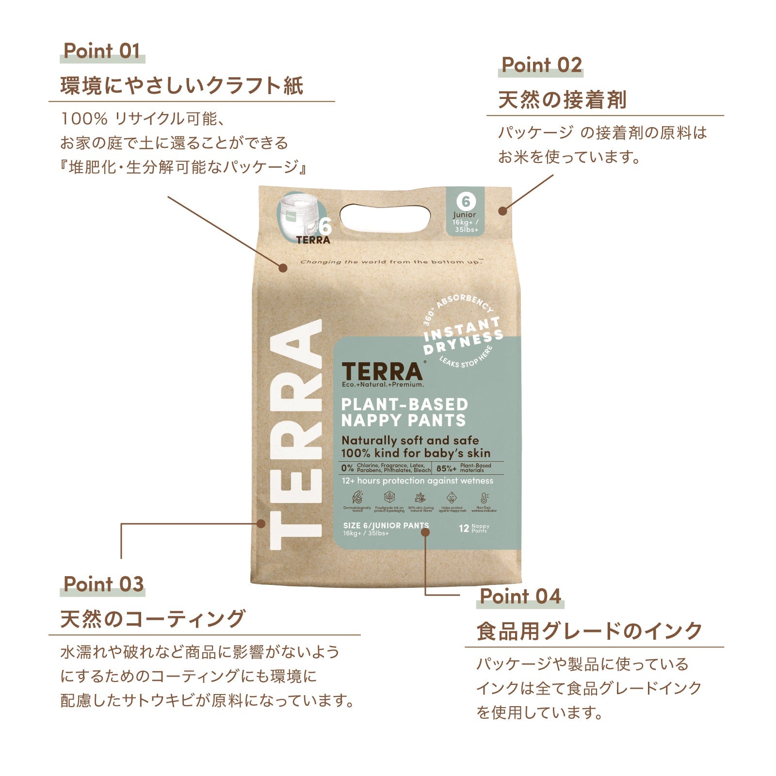 赤ちゃんの肌に触れる部分、お知らせサインは植物由来の素材を使用。またパッケージにはプラスチックを使用せず製品からパッケージに至るまで赤ちゃんと環境へのやさしさにこだわりました。